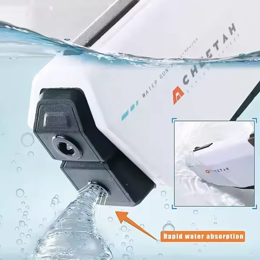مخزن آب تفنگ Cheetah ظرفیت 800 میلیلیتر (معادل 800 سی سی) دارد که از طریق درپوش مخصوص بهراحتی پر میشود. در حالت تماماتوماتیک، با یک مخزن پر میتوان چندین دقیقه بدون توقف بازی کرد. این مدل برخلاف تفنگهای معمولی نیازی به پمپکردن دستی ندارد و پرتاب آب بهصورت برقی انجام میشود. برد پرتابی بین ۱۰ تا ۱۲ متر است که برای یک جنگ آبی واقعی در حیاط یا ساحل کاملاً مناسب است. مکانیزم داخلی این تفنگ بهگونهای طراحی شده که در کمتر از ۱۵ ثانیه آماده شلیک مجدد میشود.