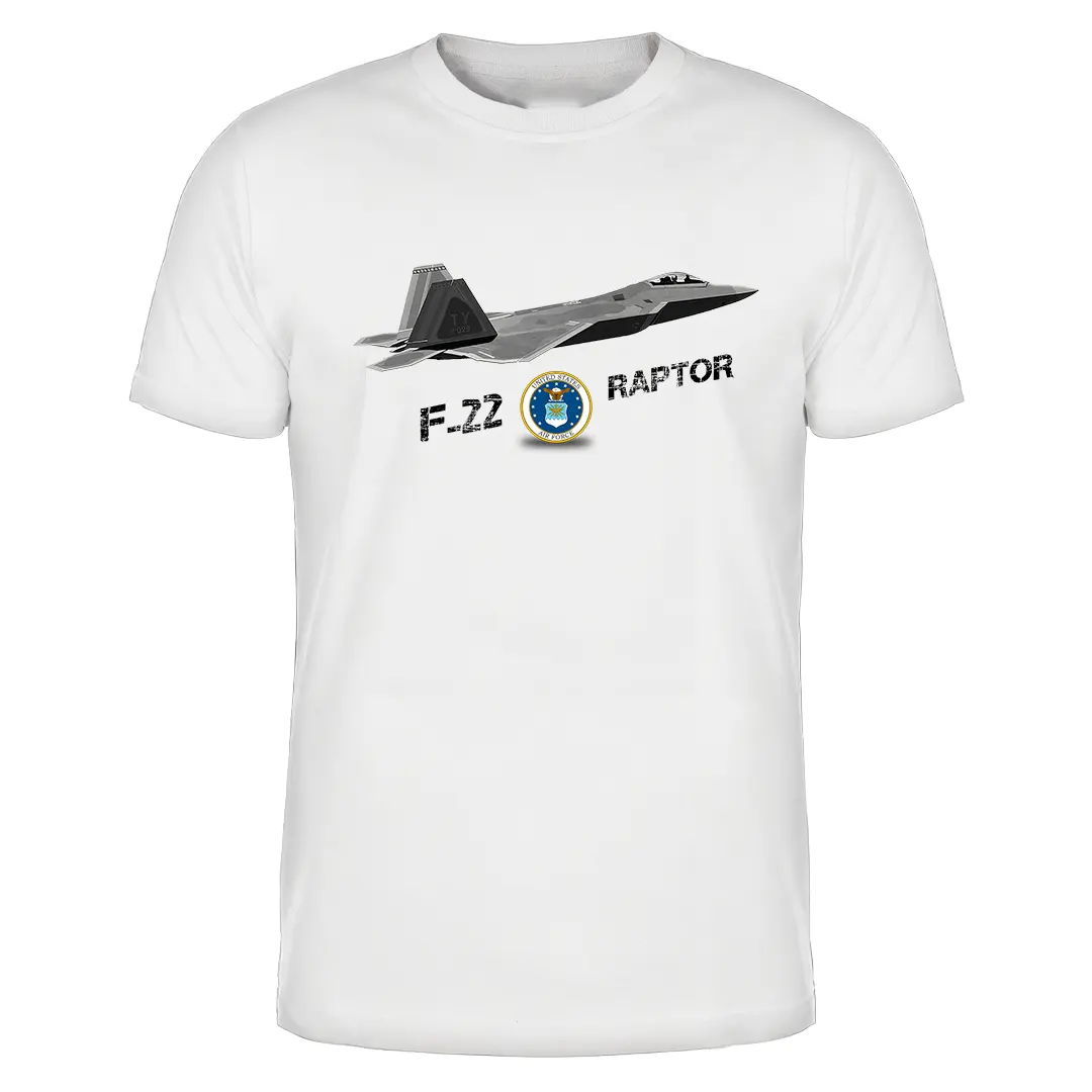 تیشرتی که میبینید، جزء فرم های خاص ارائه شده در مجموعه ایلاکپتن می‌باشد. گرافیک استفاده شده در این طرح روی تیشرت سفید به صورت دقیق چاپ شده است که زیبایی و تمیزی کار را چند برابر می کند. در این تیشرت از لوگو نیروی هوایی آمریکا در کنار جنگنده فوق پیشرفته F22 Raptor یا اف 22 رپتور استفاده شده است. گفته می‌شود این هواپیما از لحاظ قدرت مخفی کاری و عدم شناسایی رتبه اول را دارد و موقع پرواز قابل شناسایی و رهگیری راداری نیست. رنگ های استفاده شده نیز طوسی و نقره ای می‌باشد. برای مشاهده طرح های دیگر وارد صفحه انواع تیشرت های مردانه شوید.