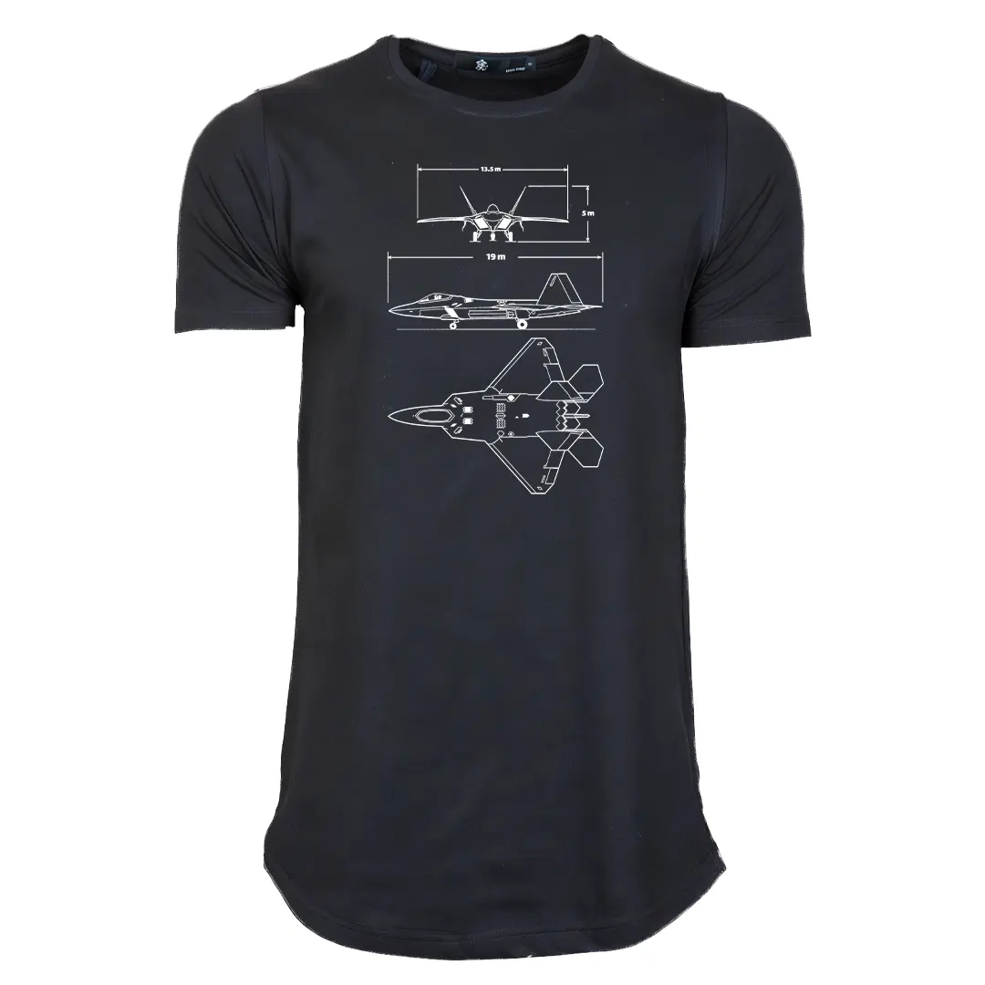 خرید تیشرت مشکی مردانه لانگ با طرح شماتیک F22 از سه زاویه، با جنس تمام پنبه در همه سایز ها ، مورد استفاده روزمره و آستین کوتاه سبک دوخت مردانه ، با یقه گرد ، اندازه قد بلند با بهترین کیفیت و قیمت. پوشاک و لباس خود را مطمئن انتخاب کنید.