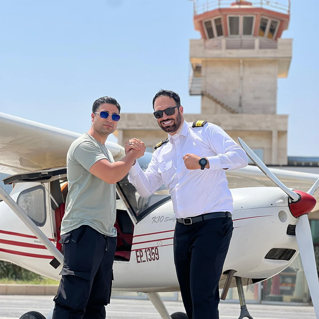 خلبان این پرواز جناب آقای ماهان علی یاری می باشد که تجربه 670 ساعت پرواز با انواع هواپیما های تفریحی فوق سبک و جایروکوپتر را داراست. با این خلبان می توانید در تمام روز های هفته در یکی از فرودگاه های نوشهر، رامسر، پیام و اراک پرواز کنید. فراموش نکنید که حداقل 4 روز قبل از زمان مورد دلخواه پرواز خود، با ایشان هماهنگ باشید. (توجه: فرودگاه نوشهر روز های یکشنبه امکان پرواز ندارد)